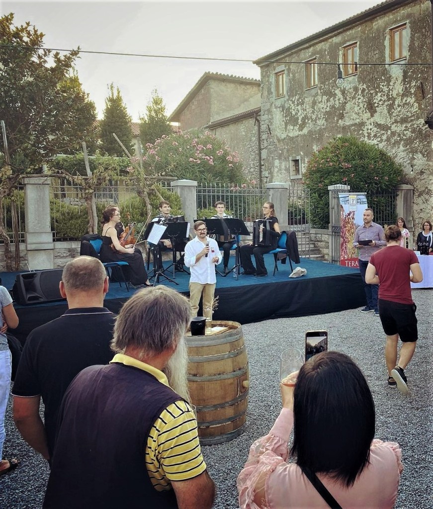 Na Prazniku terana in pršuta brez predstavitve vinarjev iz Združenja Konzorcij kraških pridelovalcev terana, ne gre. Svojo predstavite so v četrtek 10. avgusta povezali v vinsko kulinarično zgodbo, ki teran povezuje s pršutom in kraškimi siri. Poskrbljeno je bilo tudi za poudbo izbranih jedi pod taktirko domačina, chefa Erika Gomezela in ob glasbeni spremljavi kvinteta InMusic.