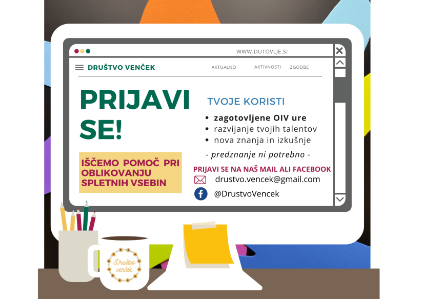Kulturno razvojno društvo Venček iz Dutovelj vabi mlade k aktivnemu sodelovanju v društvu. Svoje interese, želje in ustvarjalne ideje lahko uresničiš v sodelovanju z društvom Venček. Še posebej vabljeni dijaki gimnazij, ki morate vsako leto izpolniti tudi obveznost obveznih interesnih vsebin. O obsegu dela se dogovorimo tako, da se vam prilagodimo in izdamo potrdilo. Pišite nam e-naslov: drustvo.vencek@gmail.com.