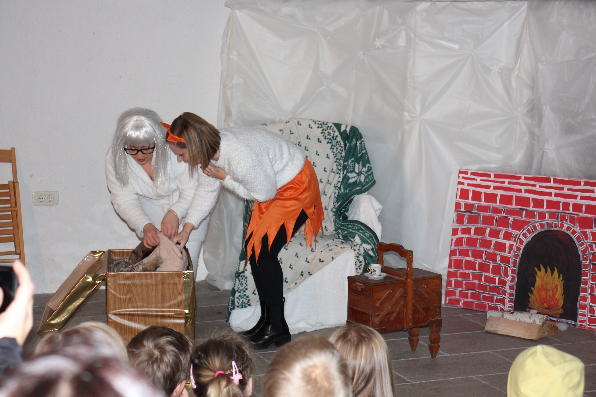 Pred prihodom dobrih mož so si z zanimanjem ogledali igrico Živali pri babici Zimi v izvedbi dramske skupine Smukvice.