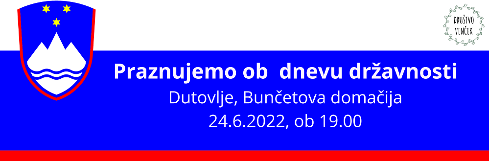 Kulturno razvojno društvo Venček iz Dutovelj je s svojimi prijatelji obeležilo Dan državnosti, na predvečer državnega praznika, 24. junija 2022. V sodelovanju z Osnovno šolo Dutovlje, Društom Kraška harmonika in Društvom Kraški šopek smo pripravili pester kulturni program. Po Dutovljah je zadonela slovenska pesem in slovenska glasba. V pripovedi ljudskih zgodb in recitalih poezije izbranih slovenskih pesnikov se je tankočutno vpletla slovenska govorjena beseda. Pevski zbor društva Venček se je premierno predstavil z venčkom narodnih pesmi. Veselo vzdušje smo popestirili ob zaključku z Avsenikovo: Slovenija, od kod lepote tvoje in povabili k petju tudi občinstvo