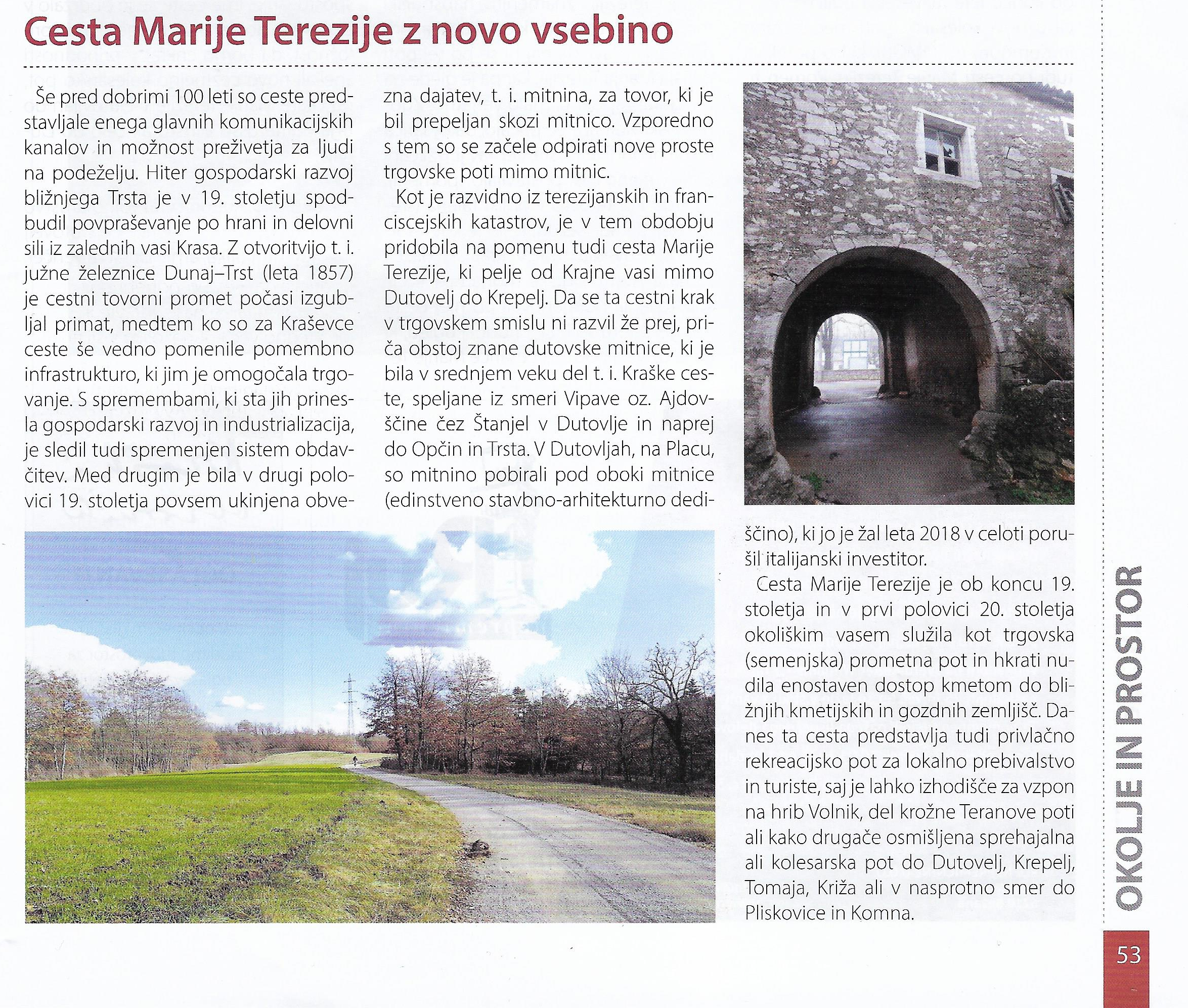 Nova kolesarska pot od Sežane do Komna, ki bo zgrajena do konca letošnjega leta pomeni za matični Kras veliko pridobitev. Več o tem si lahko preberete v članku Primorskih novic. Predvideni sta tudi dve počivališči za kolesarje: v Kosoveljah in na cesti Marije Terezije pod Dutovljami.