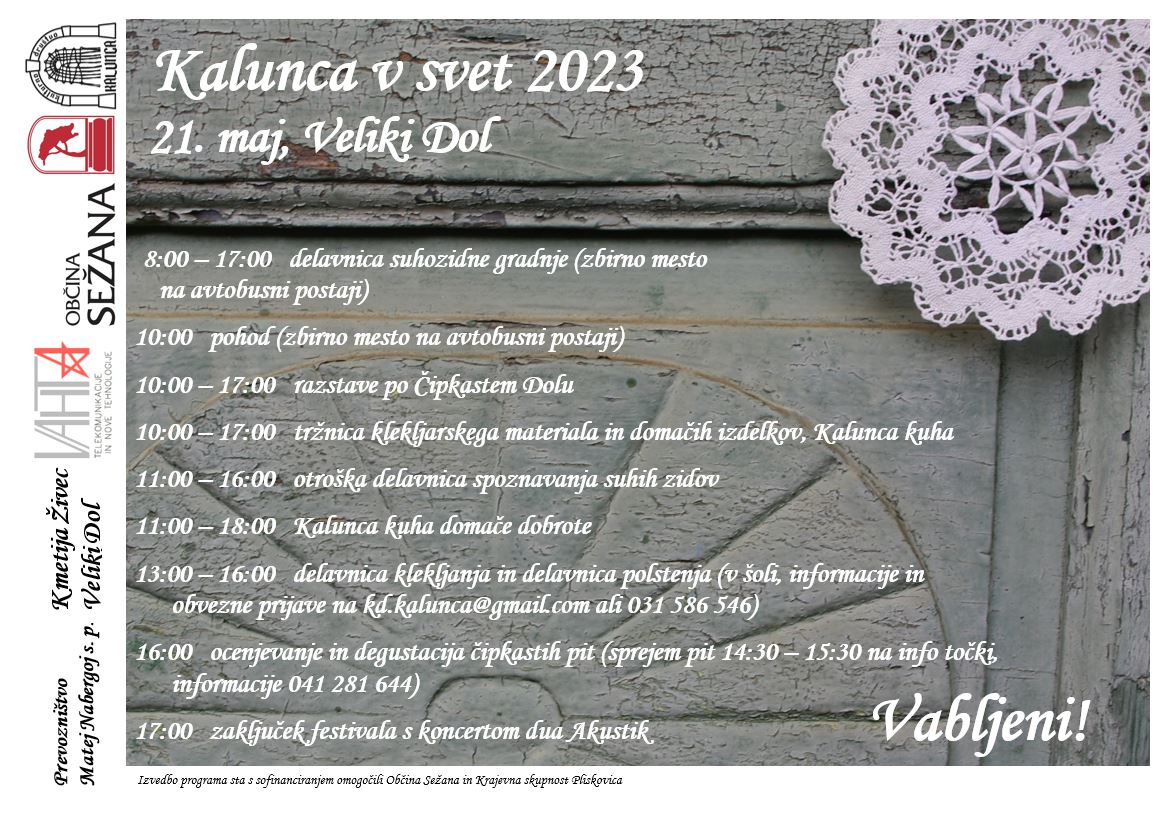 Obveščamo vas o aktualnih kulturnih dogodkih in s kulturo ter dejavnostmi društva Venček povezanih izbranih novicah iz Dutovelj in okoliških vasi. Zato vas vabimo, da pregledate zavihek: DUTOVSKI UTRIP. Splošna aktualna obvestila iz širšega območja Krasa pa so dostopna spodaj. Vabljeni k branju in k aktivni udeležbi! Vaša obvestila za objavo nam pošljite na e-naslov: drustvo.vencek@gmail.com.