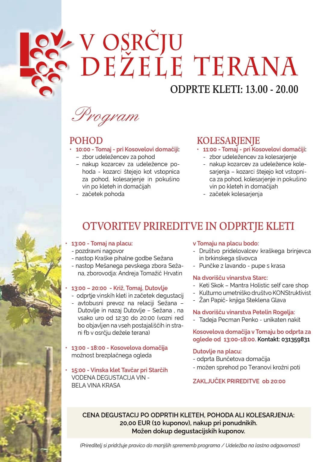 Kulturno razvojno društvo Venček bo tudi letos aktivno sodelovalo na tradicionalnem Prazniku terana in pršuta, ki ga Dutovlje gosti letos že v 53. izvedbi. Celoten program bo potekal od petka 1. avgusta do nedelje, 10. avgusta 2025 v Dutovljah in na drugih lokacijah po Krasu (Sežana, Lipica, Križ, Tomaj, Štanjel, Kontovel). Celoten program dogodka je dostopen na tej povezavi.