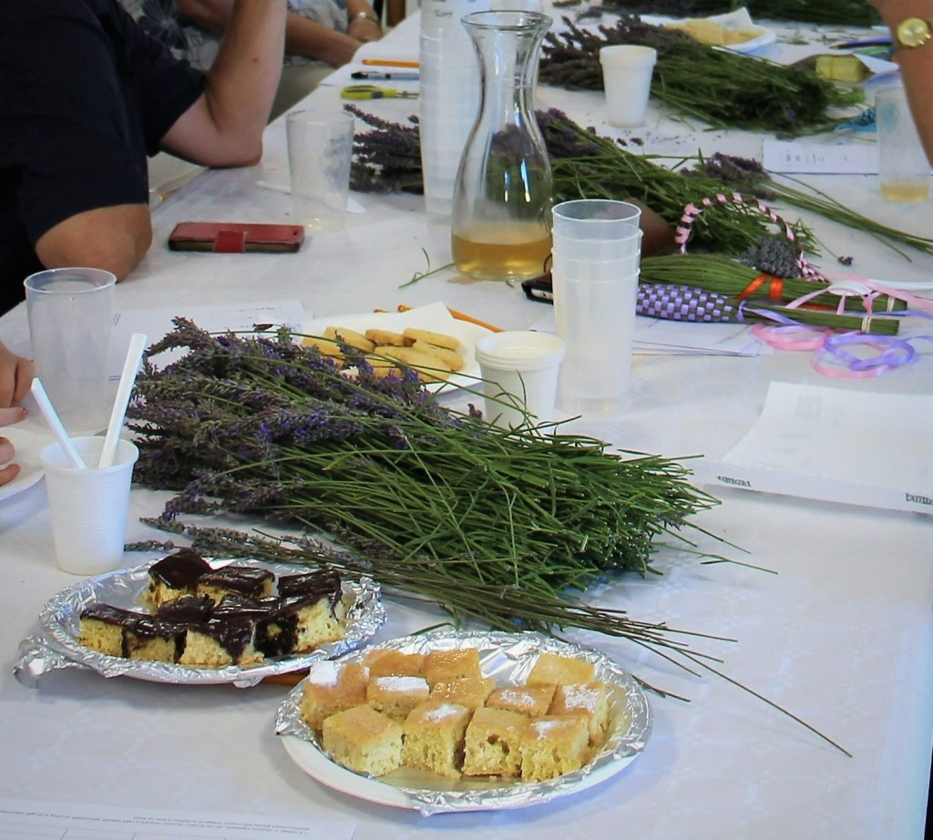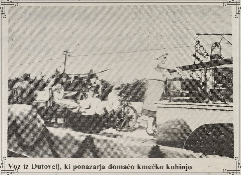 Društvo je v prijetnem ambientu toplega poletnega večera pripravilo manjši kulinarični program tradicionalnih dutovskih jedi. Postregli smo s šelinko (mineštro iz zelene), reglarji (domačimi orehovimi štruklji) in štraubami (krhkimi flancati). Tako se je včasih jedlo: “Malo, ma dobro.”.