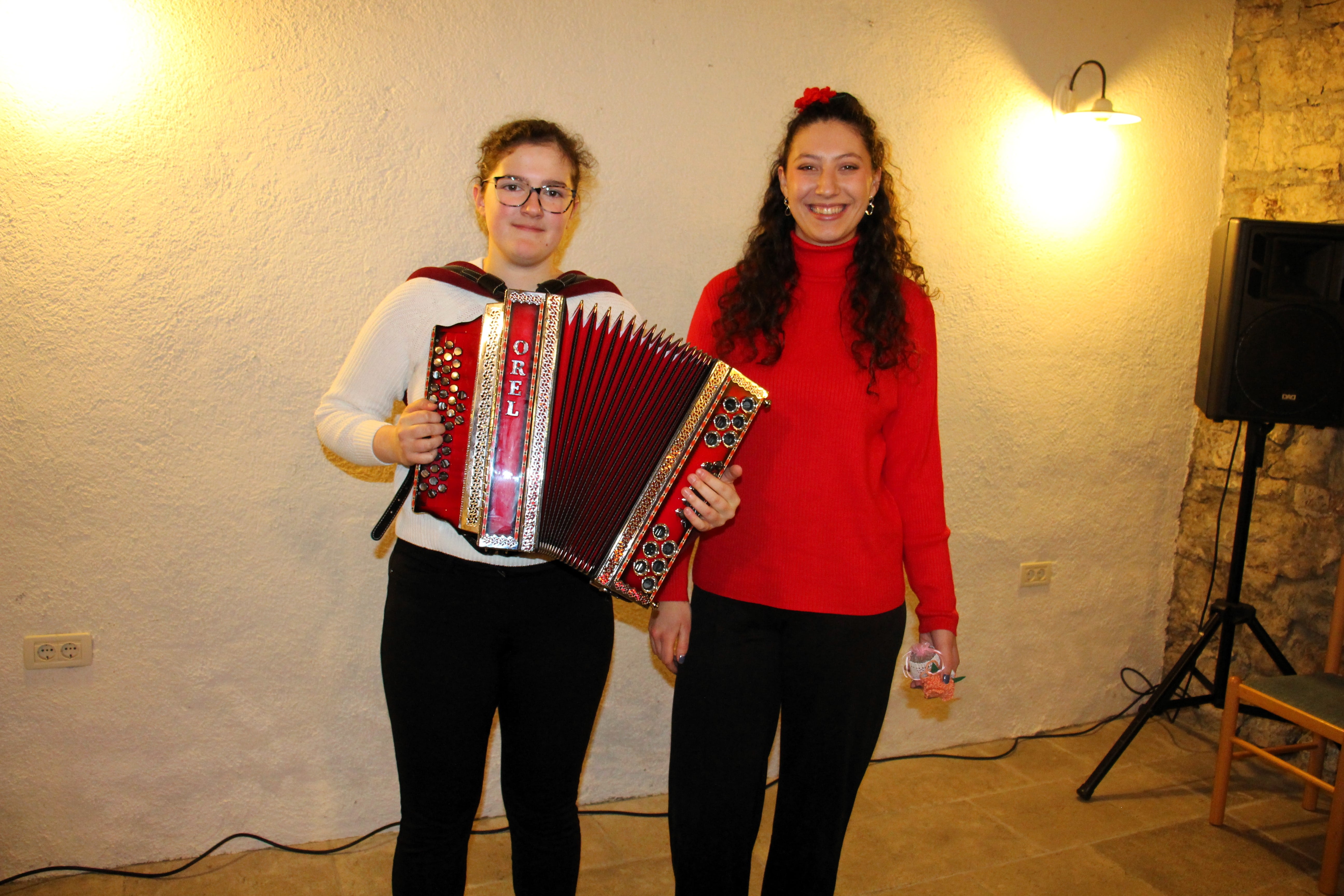 Večer sta prijetno povezovali Anja Rože in Lana Žvab, glasbeni program pa je bil raznolik: nastopi solistov, duetov ter harmonikarskega orkestra. Kot gostje so nastopili tudi pevci moške vokalne skupine društva Venček iz Dutovelj pod vodstvom Dušana Kjudra. Zapeli so dve napitnici: Nikdar ne bom pozabil in Kraška dežela ter poželi bučen aplavz občinstva.