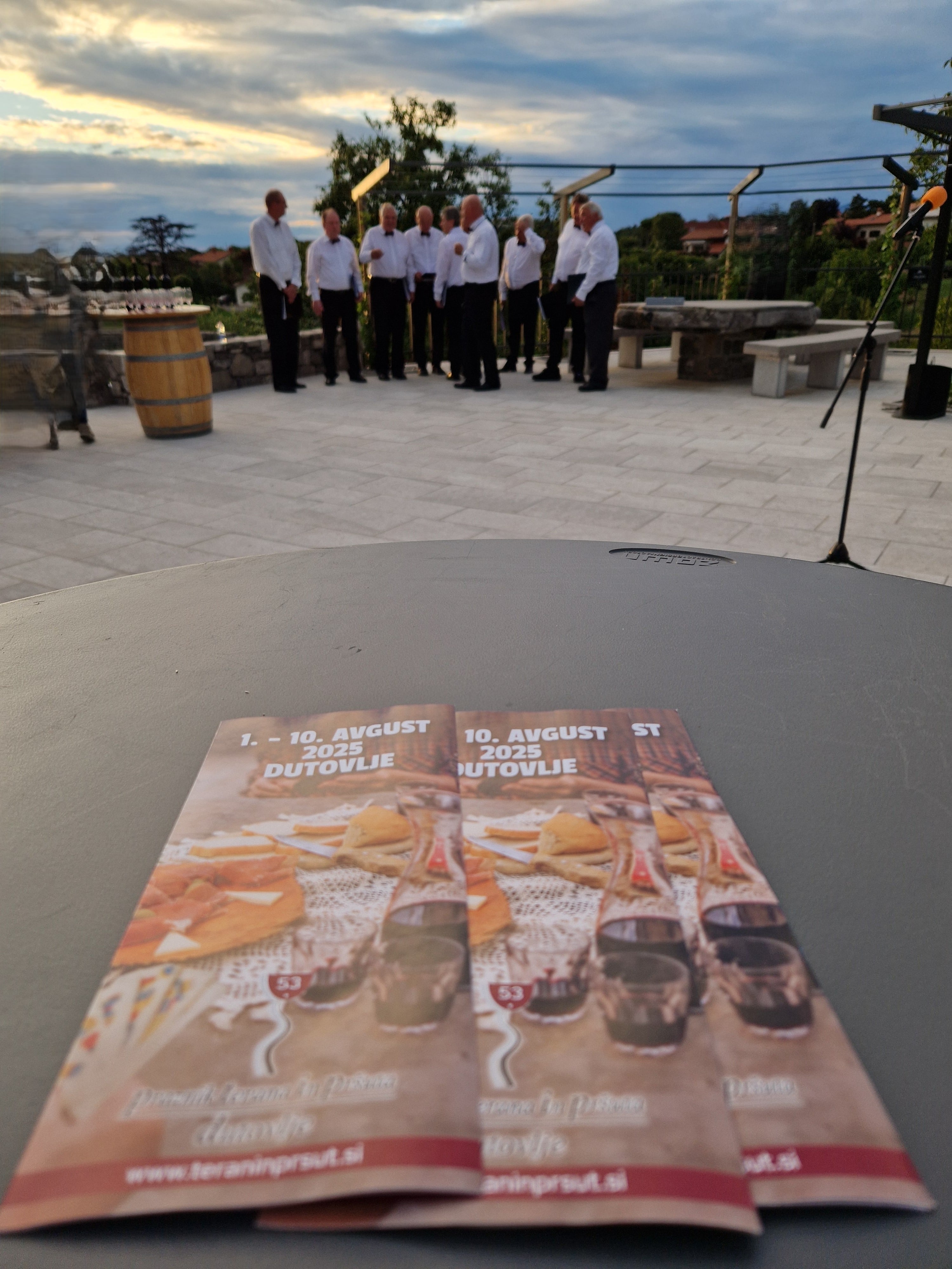 Sobotno popoldne 9. 8. 2025 na 53. Praznik terana in pršuta je v Dutovljah zaznamovalo več vzporednih dogodkov. Društvo Venček se je predstavilo s svojim kulturnim programom pod naslovom: Skriti zakladi Dutovelj. Uvodoma je predsednik društva Venček Tomaž Novak, pozdravil vse prisotne in na kratko predstavil potek dogajanja.