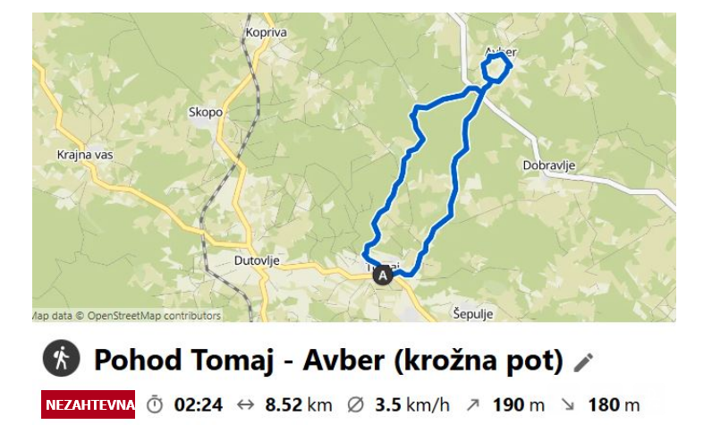 Potek pohodniške trase – pohod bo vodil licenciran turistični vodnik Edi Fabjan iz Avberja