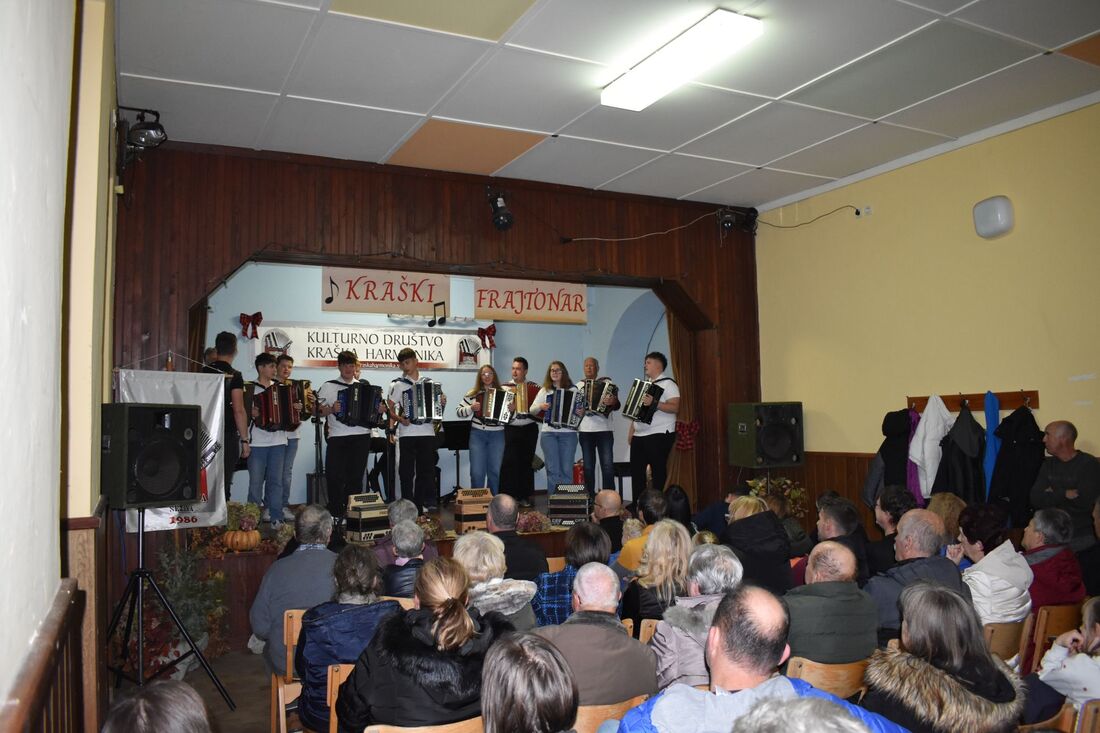 Dvorana stare šole v Skopem je v soboto 22. novembra 2025 gostila številne nastopajoče glasbenike in zvestemu občinstvu ponudila nepozaben večer vesele pesmi. Društvo Kraška harmonika je letos organiziralo že 12. tradicionalno srečanje ljubiteljev glasbe in petja: 12. Kraški frajtonar.