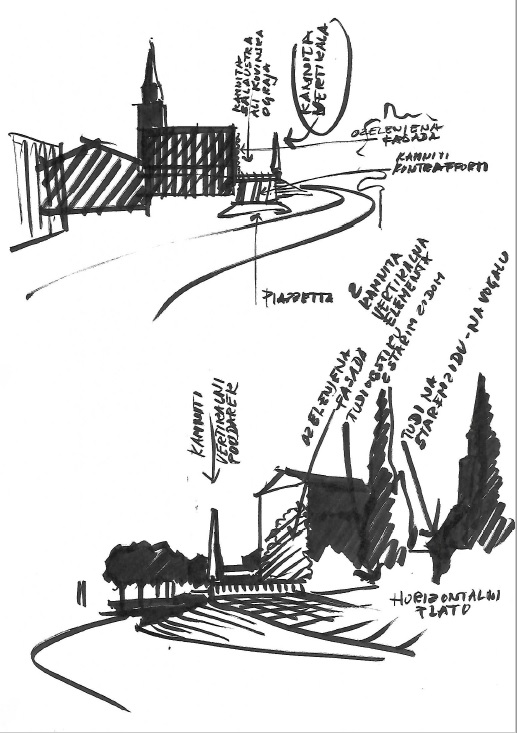 Ker pa pri celotni zadevi gre za bistveno več, za celovito tematiko, ki zaobjema kulturo skupnostnega bivanja, znotraj katere se ureja osrednji, zgodovinski trg v vasi, pa so stvari bistveno bolj občutljive in pogojujejo nosilno vlogo za to kompetentnih strok: vsaj urbanistov in arhitektov, pa tudi krajinskih arhitektov. Seveda pa le te pri projektu na interdisciplinaren način sodelujejo z vsemi ostalimi udeleženimi strokami, tudi prometno, ob tem pa vzporedno in tesno povezano tudi z upravo in s prebivalci kraja.